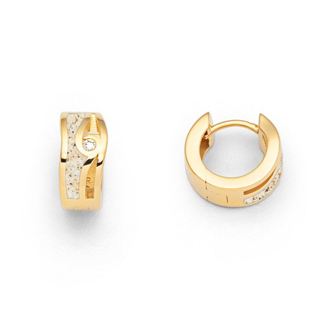 Ohrring „Maui“, Creole mit einer Strandsand befüllten Welle und einem Zirkonia (2 mm), gefasst in vergoldetem 925er Sterlingsilber