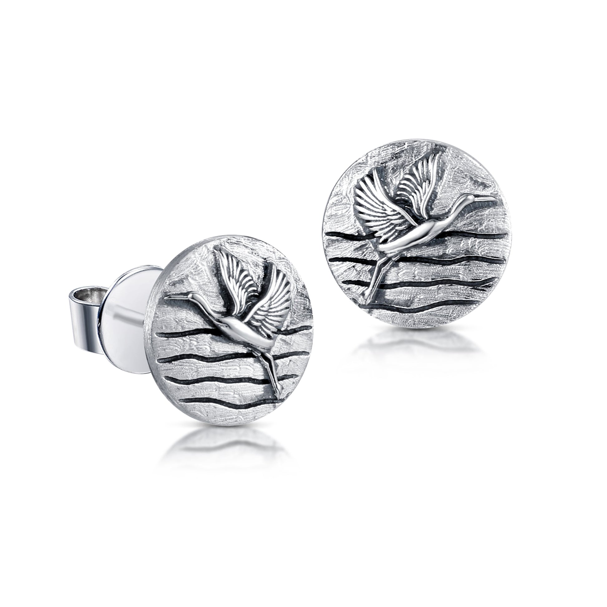 Kraniche kommen im Frühjahr und im Herbst in unsere Region. Überall in der Welt gelten die großen Zugtiere als Vögel des Glücks. Mit diesen eleganten Ohrsteckern haben Sie dieses Symbol immer dabei.
